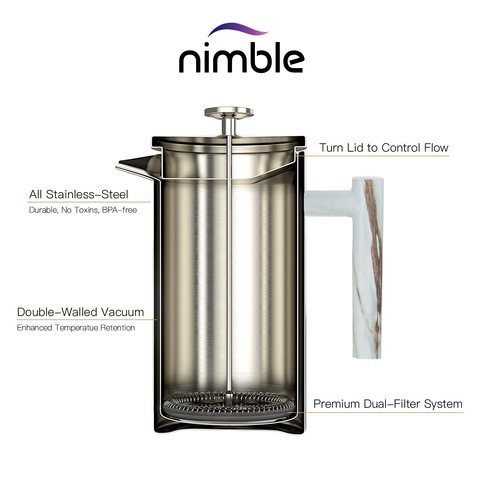 - each nimble french press is bpa-free and toxin free with capacity of 34oz / 1000ml.